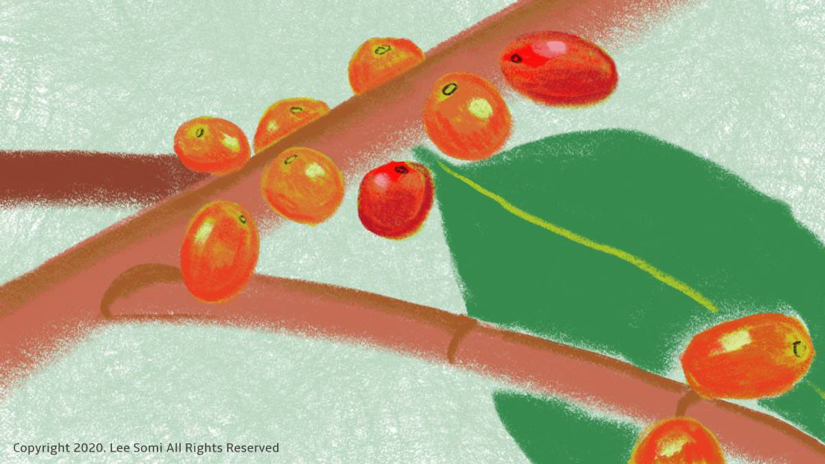 <원두>는 'biaf 2020 11초 애니메이션 영화제' 제출을 목적으로 만들어진 초단편 애니메이션이다. 원두 커피를 마시기 전까지 커피콩의 여정을 함축적으로 담고 있다.